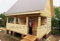 Небольшая баня 2,5 на 3,5 выстроена из бревна с каркасным предбанником. Местоположение бани дачные участки в Дербышках.