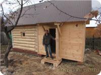 Баня размером 4 на 5 метров по торцам брёвен. Рубка сруба произведена "в лапу". Диаметр бревна не менее 20 см.