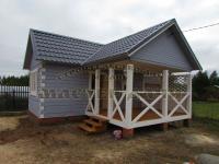 Завершено строительство бани из бруса с террасой в п. Борисоглебское г. Казань. Общие размеры застройки 4 на 6 метров - 24 м2. Баня 4 на 4 из бруса разделена 2 перегородками на 3 отдела, комната отдыха, моечная (душевая) и парная. Терраса открытая с декором до половины балясинами. Баня из бруса с террасой построена за 7 дней (без электрики и пропитки антисептиками).